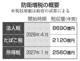 防衛増税 あす開始 法人とたばこ先行、来年は所得税 年1兆3000億円 税収増見込む 2026年3月31日 05:00 防衛力強化の財源とするための増税... 残り651文字(全文:668文字) この記事をお読みいただくには「デジタルプラン」または「宅配+デジタルプラン」の会員登録が必要です。無料会員の方はログインしてマイページからコース変更してください。デジタルプランまたは宅配+デジタルプランをご登録中の方はログインしてください。 岐阜新聞デジタル会員に登録すると 無料会員向け記事が読める ニュースレターで最新情報が受け取れる デジタルプラン、宅配+デジタルプランなら Webオリジナルコンテンツが読める 紙面ビューアが読める チケットの先行発売に参加できる お得なクーポンが使える 新規登録ページ ログインページ トップ 岐阜のニュース 防衛増税 あす開始 法人とたばこ先行、来年は所得税 年1兆3000億円 税収増見込む 関連記事 ミートパイのテイクアウト専門店人気 多治見市にオープン、オージービーフ100% 高次脳機能障害、理解の一歩に 支援法施行、岐阜県内の当事者が思い 「ヤクザから金受け取っている」「室外機に現金置け」特殊詐欺相次ぐ 多治見署管内、20代も被害 おむすびカフェ、定番ツナマヨやキムクリチーなど限定も 美濃加茂市【記者オススメ! ギフテン】 ベイ今季初勝利 ★独立リーグが名称変更 おすすめ記事 岐阜市で2400万円相当の金の地金だまし取られる 70代男性被害、特殊詐欺か 桜彩るコースでプロアマ戦 岐阜オープン4日開幕、5日決勝は生中継 ホリエモン監修カレーが岐阜に初上陸! 出汁にこだわり、なぜかラーメン店で提供 飛騨生きびな祭、あす3日開催 飛騨一宮水無神社