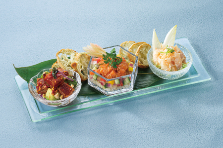 ポケとは、生の魚介を醤油や塩などの調味料で和えた、ハワイの伝統的な料理です。ポケを盛り合わせてご用意し、食べ比べをお楽しみいただけます。