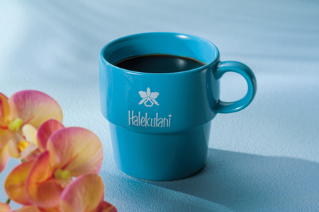 表面にハレクラニロゴマーク、裏面に帝国ホテルロゴマークをあしらった、鮮やかなハレクラニブルーのスタッキング可能なマグカップです。