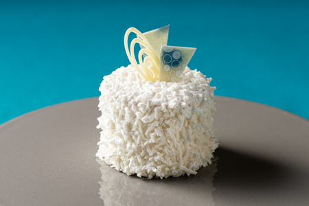 フェア初開催の2009年以来、不動の人気を誇るハレクラニのオリジナルレシピのケーキ。ふんわりとしたシフォン生地にカスタードクリームとラズベリーソースを絞り、表面にココナッツロング*をまぶしました。