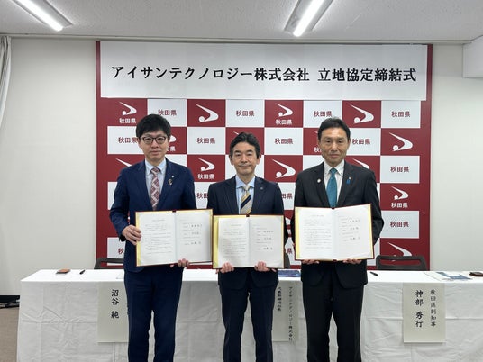 アイサンテクノロジー株式会社(本社:愛知県名古屋市中区、代表取締役社長:加藤 淳)は、事業拡大および人財基盤強化の一環として秋田市に、新たに「秋田オフィス」を開設いたします。新拠点開設に伴い、2026年3月27日に、秋田県庁にて立地協定を締結しましたので、お知らせします。