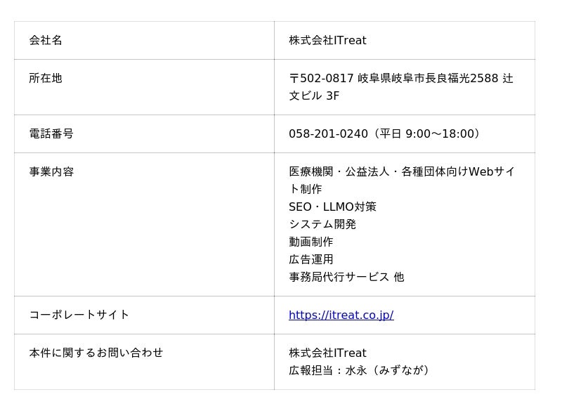 会社概要(株式会社ITreat)