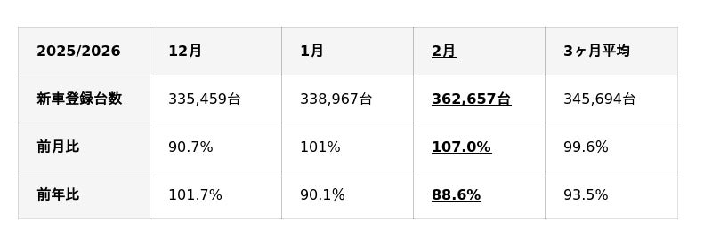 自動車販売市場の動向(2026年2月)