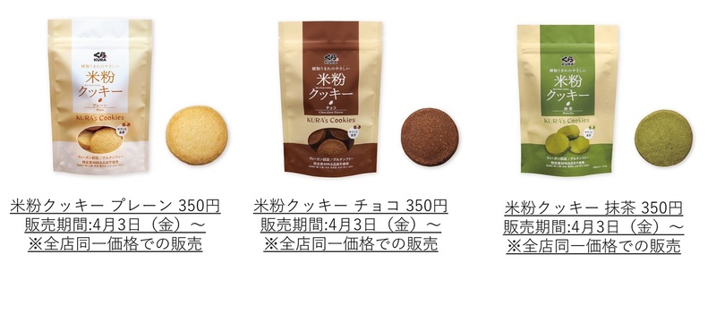 昨年販売した米粉クッキーが好評だったことを受け、4月3日から、全国のくら寿司にて再販売いたします。本商品は、四大添加物無添加(※1)・ヴィーガン認証・グルテンフリー・特定原材料8品目不使用(※2)で、ココナッツが香るサクッとした食感の「プレーン」、ココアとアーモンドの香ばしさが調和した「チョコ」、抹茶のほろ苦さと深い香りがまろやかに広がる「抹茶」の3種類をご用意。お席のタッチパネルから注文でき、お持ち帰りも可能です。アレルギーが気になる方やお子様にもおすすめです。