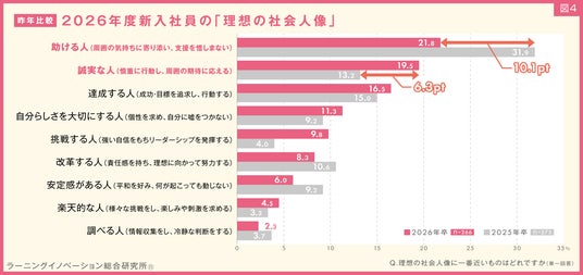 4. 理想の社会人像、「助ける人」が2年連続トップ。2位に「誠実な人」が浮上