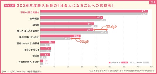 1. 社会人になることへの気持ち、「不安・心配」が約8割でトップ。「嬉しさ・楽しみ」は昨年から10.4ポイント減