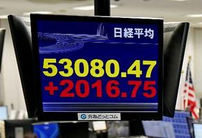 1日午前の東京株式市場は、日経平均株価(225種)が大幅反発した。前日終値からの上げ幅は一時2200円を超え、節目の5万3000円を回復した。中東情勢の混乱が収束に向かうとの期待から買い注文が膨らんだ。