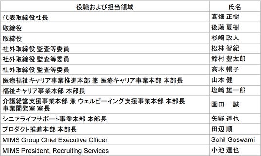 株式会社エス・エム・エス(本社:東京都港区、代表取締役社長:高畑正樹、東証プライム、以下「当社」)は、第24期(2026年度)の経営体制についてお知らせします。当社は2003年に創業し、「高齢社会に適した情報インフラを構築することで人々の生活の質を向上し、社会に貢献し続ける」ことをミッションに掲げ、さまざまな事業を開発、運営しています。2026年1月1日付で創業者から3代目の代表取締役社長となる高畑正樹が就任しました。第24期も役員ならびに各本部長のもと、さらなる事業成長を進めてまいります。