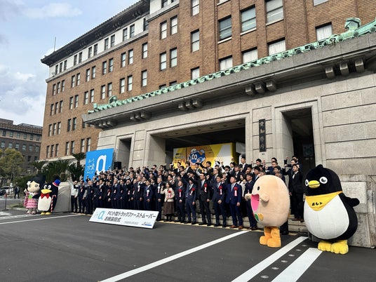 本取り組みでは、複数の民間企業および自治体がFC小型トラックを導入し、物流分野における脱炭素化の実証が進められています。当社は、その導入企業の一社として招待を受け、本式典に参加しました。