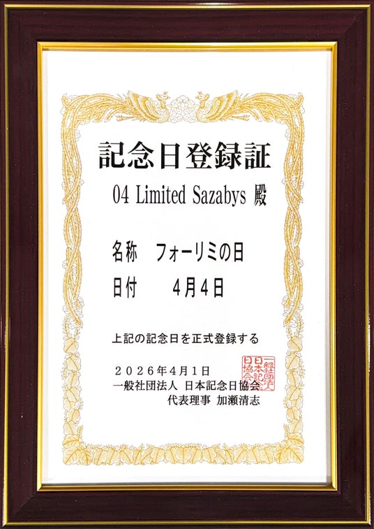名古屋で結成された4人組ロックバンド04 Limited Sazabys(フォーリミテッドサザビーズ)のバンド名の略称「フォーリミ」にちなみ、04月04日を「フォーリミの日」として、日本記念日協会により正式に認定・登録された。