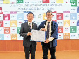 恵那市と市景観整備業者会 災害時、倒木対応で協定 2026年4月2日 05:00 災害時の倒木対応などの協定を結んだ田中訓会長(右)と小坂喬峰市長=恵那市役所 恵那市と市景観整備業者会(同市大... 残り251文字(全文:268文字) この記事をお読みいただくには「デジタルプラン」または「宅配+デジタルプラン」の会員登録が必要です。無料会員の方はログインしてマイページからコース変更してください。デジタルプランまたは宅配+デジタルプランをご登録中の方はログインしてください。 岐阜新聞デジタル会員に登録すると 無料会員向け記事が読める ニュースレターで最新情報が受け取れる デジタルプラン、宅配+デジタルプランなら Webオリジナルコンテンツが読める 紙面ビューアが読める チケットの先行発売に参加できる お得なクーポンが使える 新規登録ページ ログインページ トップ 岐阜のニュース 恵那市と市景観整備業者会 災害時、倒木対応で協定 関連記事 バドミントン・岐阜Bluvic加入2選手が決意「広田と戦う覚悟/世界で活躍する」 ボードゲームで金融学ぶ 岐阜市、十六銀とJ-FLECが教室 消防団OBで構成「災害支援団員」新設 岐阜市、災害時限定で人材確保 育てたスイセン6万5千株、山里彩る 郡上市で一般開放 飛騨牛、成田と羽田空港JAL国際線ラウンジに初採用 外国人客に大人気 人工芝グラウンド完成 可児市運動公園、4日にスポーツマルシェ おすすめ記事 【速報】岐阜市のコンビニ強盗、容疑の男逮捕 愛知県警に出頭 飛騨牛、成田と羽田空港JAL国際線ラウンジに初採用 外国人客に大人気 人工芝グラウンド完成 可児市運動公園、4日にスポーツマルシェ 消防団OBで構成「災害支援団員」新設 岐阜市、災害時限定で人材確保