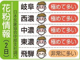 岐阜県内の花粉情報(2日) 2026年4月2日 07:48 岐阜県内の花粉飛散度は、以下の通り... 残り136文字(全文:153文字) この記事をお読みいただくには「デジタルプラン」または「宅配+デジタルプラン」の会員登録が必要です。無料会員の方はログインしてマイページからコース変更してください。デジタルプランまたは宅配+デジタルプランをご登録中の方はログインしてください。 岐阜新聞デジタル会員に登録すると 無料会員向け記事が読める ニュースレターで最新情報が受け取れる デジタルプラン、宅配+デジタルプランなら Webオリジナルコンテンツが読める 紙面ビューアが読める チケットの先行発売に参加できる お得なクーポンが使える 新規登録ページ ログインページ トップ 岐阜のニュース 岐阜県内の花粉情報(2日) 関連記事 【速報】岐阜市のコンビニ強盗、容疑の男逮捕 愛知県警に出頭 岐阜の企業人として一歩踏み出す 県内各社で入社式 新入職員、地域の発展へ決意新た 岐阜県内の自治体で辞令交付式 各務原市が那加教育福祉複合センター開設 教育と福祉の複合施設 岐阜県内の花粉情報(1日) 奥美濃古地鶏を使った郷土料理「鶏ちゃん」、花酵母日本酒の石鹸。岐阜土産にいかが?【岐阜新聞セレクション】ネットショップがオープン おすすめ記事 【速報】岐阜市のコンビニ強盗、容疑の男逮捕 愛知県警に出頭 飛騨牛、成田と羽田空港JAL国際線ラウンジに初採用 外国人客に大人気 人工芝グラウンド完成 可児市運動公園、4日にスポーツマルシェ 消防団OBで構成「災害支援団員」新設 岐阜市、災害時限定で人材確保