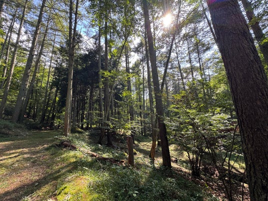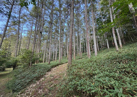 このエリアは、ヒノキやカラマツ、広葉樹が混ざり合い、四季ごとに異なる表情を見せてくれる森です。