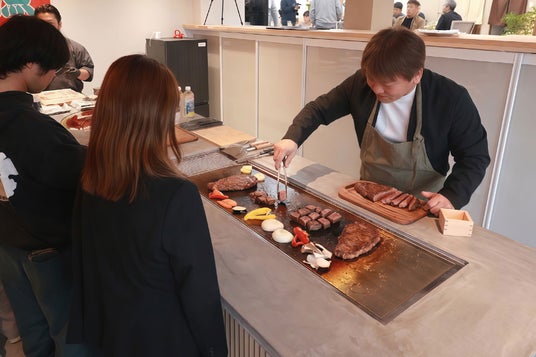 以前のオフィスでは、複数人で昼食を囲むスペースが無く、部署ごとに分かれた自席での「個食」が殆ど。コミュニケーションの発生率が低く、部署を越えたアイデアの化学反応が乏しい状態でした。そこで今回、入口正面に部署の垣根を越えた交流のハブとなる「実家食堂」を設置しました。メインテーブルにはコミュニケーションの象徴として鉄板を備え、毎月29日の「肉の日」には代表自らがホストとして社員をもてなす「29日は『肉の日』制度」の運用を開始。良質な食事を囲み、同じ食卓で語らう時間が、役職や部署を超えた強固な結束力を生み出します。