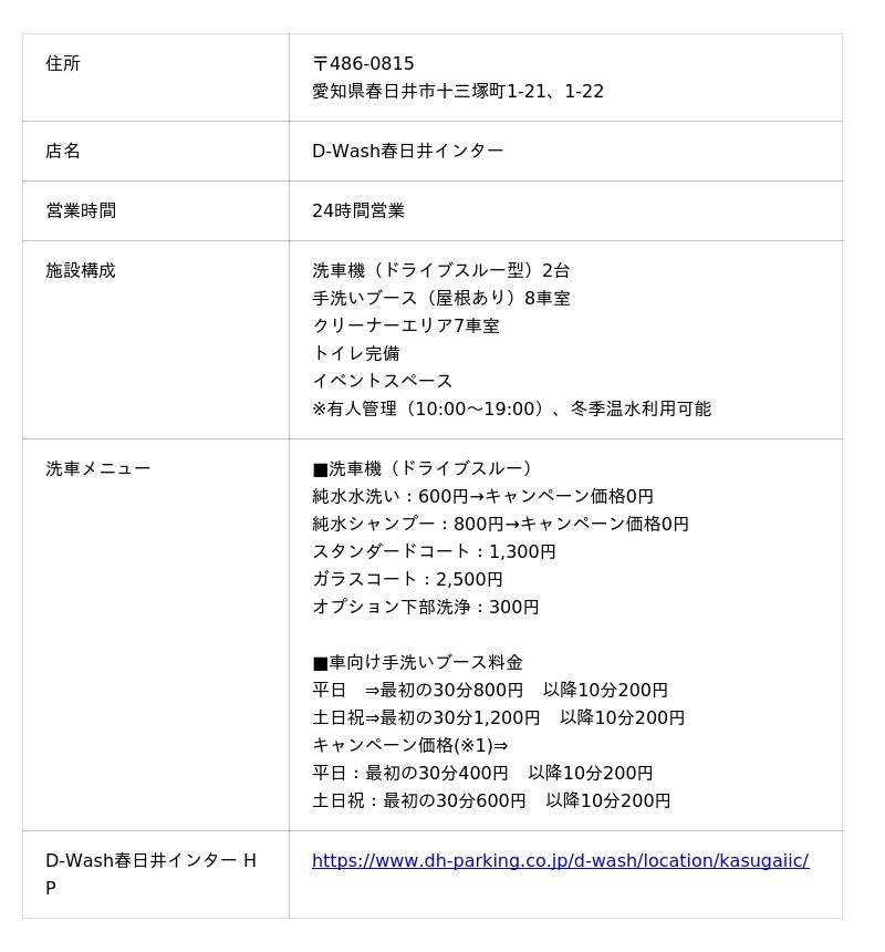 大和ハウスグループの大和ハウスパーキング株式会社(本社:東京都港区、社長:酒井太)は、2026年4月8日、愛知県春日井市に旗艦店「D-Wash(ディー・ウォッシュ)春日井インター」をグランドオープンします。