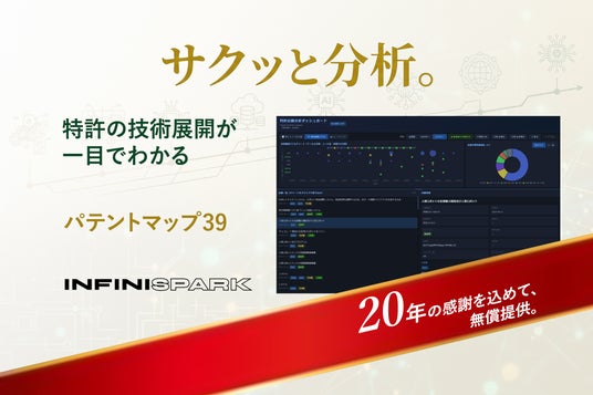 「AIをすべての人と組織のブースターに」をコンセプトに掲げ、AI導入支援・AIツール開発・ブランディングを融合させたAI戦略実装支援を提供するインフィニスパーク株式会社(本社:兵庫県芦屋市、代表取締役:西原広徳)は、2026年4月2日(木)、中小企業・スタートアップ・研究機関を対象としたパテントマップツール「パテントマップ39」の無償提供を開始しました。