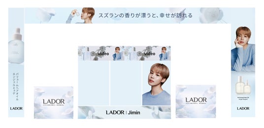 会場では、LADORのブランドアンバサダーであるBTS・Jiminさんのビジュアルを掲出するとともに、ブランドの世界観を体感できる空間でお迎えします。
