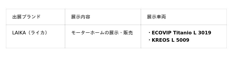 トイファクトリーが日本総代理店を務める“最高峰”ラグジュアリーモーターホームブランド「LAIKA(ライカ)」より日本国内で1台限りの限定車と、国内ラストストックとなる希少モデルの計2台を特別展示