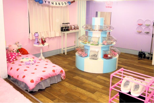 パステルカラーで統一された店内は、海外のガールズルームを再現したコンセプトルーム。ベッドや可愛いインテリアが配置され、まるでお友達の部屋に遊びに来たような感覚でリラックスして制作を楽しめます。