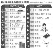 男の子 警察官 女の子 ケーキ屋・パン屋 新小学1年生が就きたい職業 昨年と変わらぬ人気 2026年4月3日 05:00 クラレは2日、小学校に今春入学す... 残り498文字(全文:515文字) この記事をお読みいただくには「デジタルプラン」または「宅配+デジタルプラン」の会員登録が必要です。無料会員の方はログインしてマイページからコース変更してください。デジタルプランまたは宅配+デジタルプランをご登録中の方はログインしてください。 岐阜新聞デジタル会員に登録すると 無料会員向け記事が読める ニュースレターで最新情報が受け取れる デジタルプラン、宅配+デジタルプランなら Webオリジナルコンテンツが読める 紙面ビューアが読める チケットの先行発売に参加できる お得なクーポンが使える 新規登録ページ ログインページ トップ 岐阜のニュース 男の子 警察官 女の子 ケーキ屋・パン屋 新小学1年生が就きたい職業 昨年と変わらぬ人気 関連記事 岐阜市商連が「神田町テラス」設置 歩道で安心して飲食、車道との間にガードパイプ ぎふチャン公式テーマ曲を収録 長澤明日香さんCDミニアルバム発売 4月25、26日の神戸山王まつりをPR 町役場に歴代ポスター展示 高山市でも桜が開花 野球 全国高校女子選抜 佐久長聖が初優勝 ◇バレーボール 大同生命SVリーグ おすすめ記事 山田玄彩、最終18番で劇的逆転 各務原カントリーの難コース攻略【岐阜オープンクラシック 決勝ラウンド】 「長良川リバーサイドプラザ」改称オープン 海津市の緑地公園、スポーツ施設やキャンプ場整備へ 【速報】岐阜オープンクラシック 24歳の山田玄彩が初優勝 ベストアマは上田翔太 岐阜オープンクラシック【予選ラウンド・ハイライト】 4アンダーで首位3人、1打差に5人続く