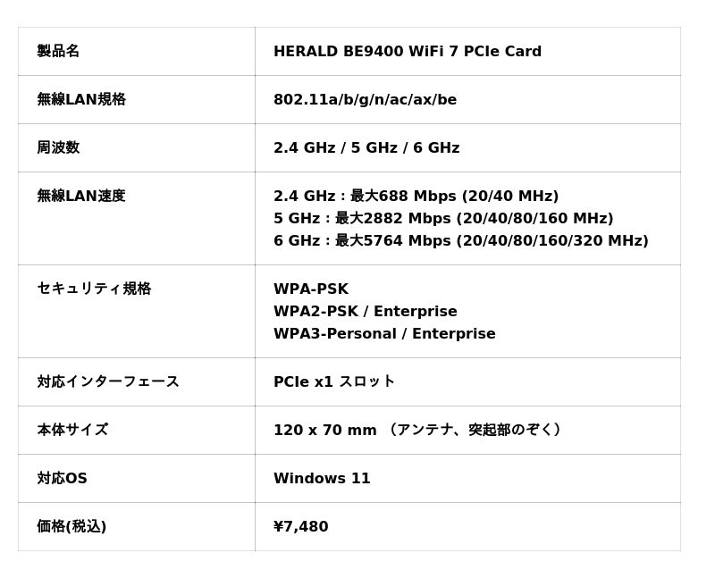 https://jp.msi.com/Networking/HERALD-BE9400-WiFi-7-PCIe-Card