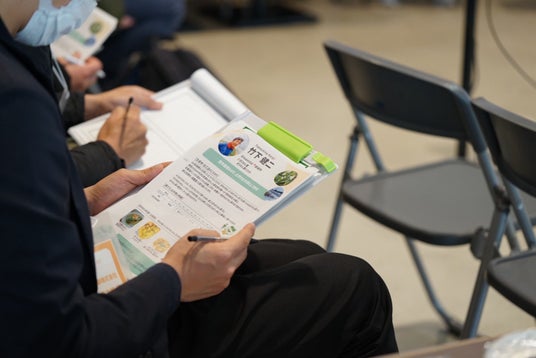 生産者それぞれが、栽培の工夫や食材の特徴などを紹介。参加者は真剣な表情で耳を傾け、メモを取りながら食材への理解を深めていました。