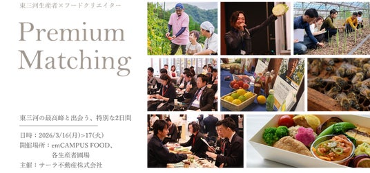 サーラ不動産株式会社(本社:愛知県豊橋市)は、2026年3月16日(月)・17日(火)に、東三河フードバレーの取り組みの一環として、東三河地域の生産者と、全国の料理人・バイヤー(以下「参加者」)をつなぐ体験型マッチングイベント「プレミアムマッチング会」(以下「本イベント」)を開催しました。