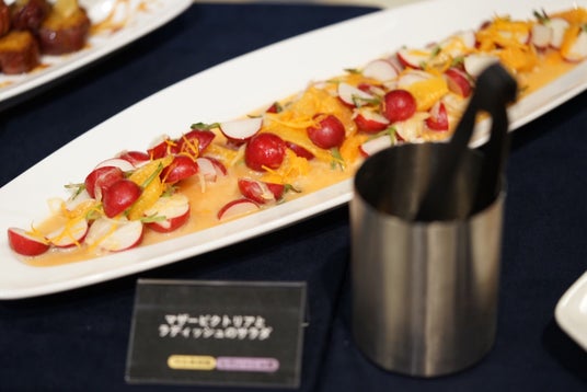 サラダコーナーには「マザービクトリアとラディッシュのサラダ」や「スナップエンドウのサラダ」など見た目にも華やかなメニューがテーブルを彩りました。