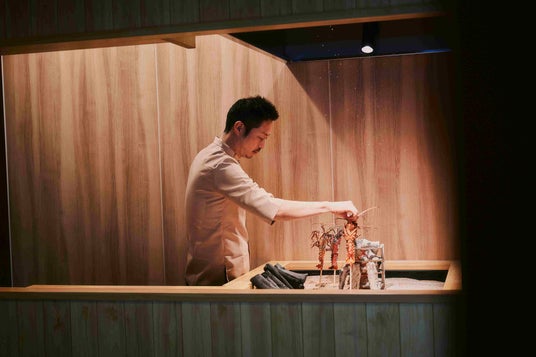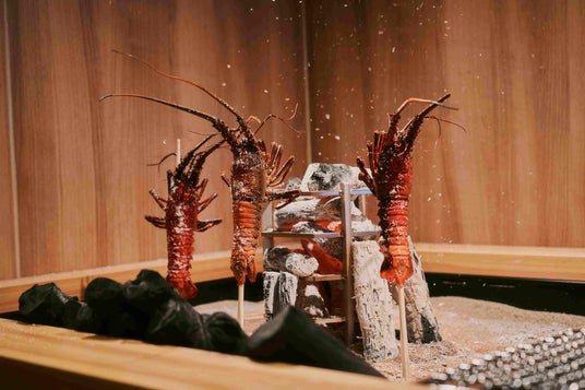 原始焼きは、食材を串に刺して炭火の周りに立て、遠火でじっくりと焼き上げる伝統的な調理法で、炭火の強火と遠火を使い分けながら、素材の旨みと香りを最大限に引き出します。"新鮮=生"という固定観念を超え、火を通すことで食材の真価を引き出すという逆説の美学。炭火の音や香り、焼き上がる瞬間の臨場感とともに、素材本来の旨みをお楽しみいただけます。
