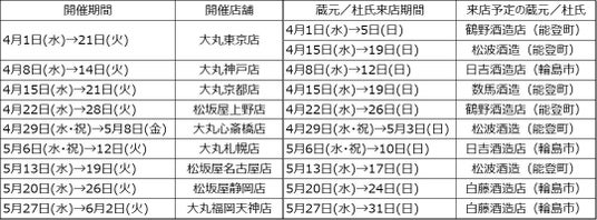 企画名:大丸・松坂屋 ×能登の酒を止めるな! コラボ企画内容:能登の酒蔵による「協力蔵との共同醸造酒」「被災後に再開した自社醸造酒」の販売