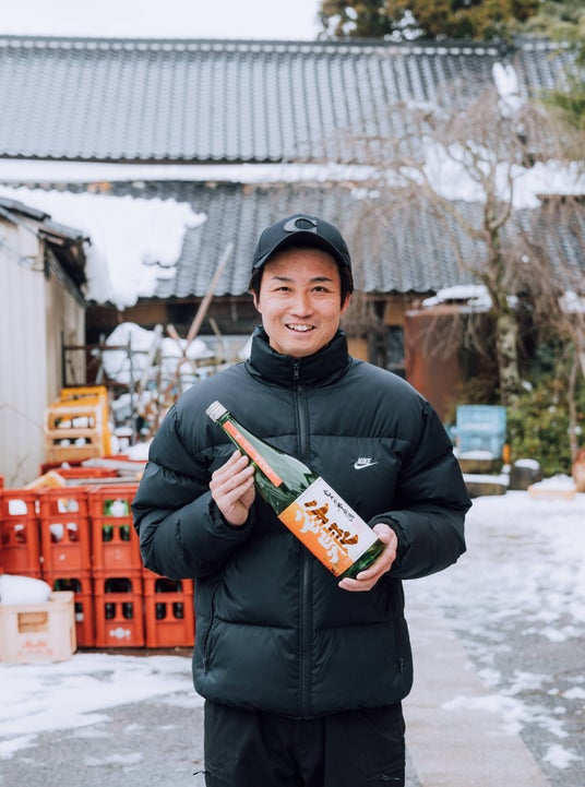 明治元年に創業した能登町松波地区にある酒蔵。能登杜氏による「極寒仕込み」と呼ばれる伝統的な手法で、日本酒「大江山」などを製造。地震により、築150年以上の歴史ある酒蔵と店舗が全壊し、昨秋から仮設店舗をオープンさせ営業を再開しました。販売する「大江山×二兎 生酒」は、愛知県岡崎市の丸石醸造と共同醸造で、大江山と二兎(丸石醸造)が出会い、震災から2年、再出発の想いを込めて醸した限定「生酒」です。芳しき扉を開けた瞬間、微細なきらめきが舌の上で踊る。シュワッとした挨拶に思わず笑みがこぼれる味わいです。