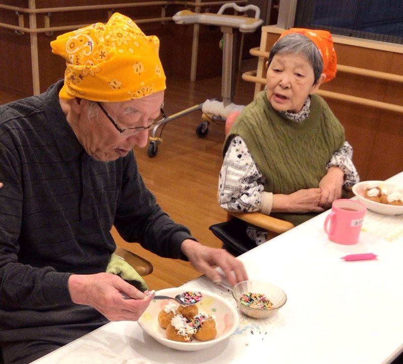 岐阜市の特別養護老人ホームるぴなすビラが力を入れていることが「栄養クラブ」と銘打ったお菓子づくりの活動です。本年度は利用者12人が登録し、定期的に集まってフルーツサンドやおはぎなどを作って味わっています。