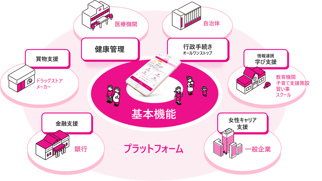 当社は、妊娠・子育てに関する摩擦係数をゼロにすることをビジョンとして掲げています。その実現に向け、『子育てDX(R)』※2を通じたさらなる支援領域の拡張・連携(妊産婦健診、予防接種、乳幼児健診など)や、子育てに係るオールワンストップでの申請・手続きの整備、関係機関(医療、保育・教育、専門機関など)との母子保健情報の連携を推進しています。これにより、保護者の“不安や負担”を軽減し、“安心で簡便”な子育て社会を地域と共創することを目指します。