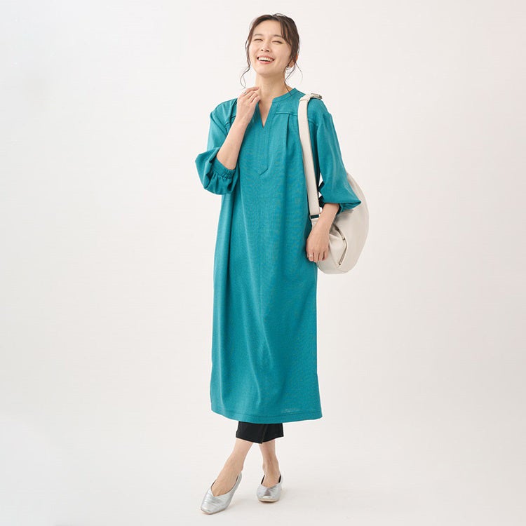 スッキリと開いたネックラインが抜け感をプラスし、ネックレスやスカーフなどの小物合わせも映えるデザインに仕上げました。