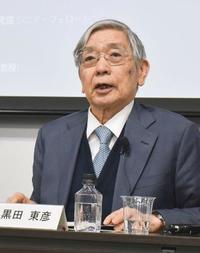 黒田氏は通商問題に関するシンポジウムで講演し、自らが座長となってとりまとめた自由貿易維持に向けた緊急提言を公表した。