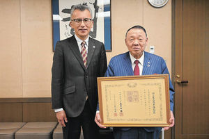 河上薬品に紺綬褒章 スポーツ振興 関市に1000万円 政治・行政 2026年4月4日 05:00 褒状を受け取った河上宗勝社長(右)=関市役所 関市に1千万円の寄付をした河上薬... 残り209文字(全文:226文字) この記事をお読みいただくには「デジタルプラン」または「宅配+デジタルプラン」の会員登録が必要です。無料会員の方はログインしてマイページからコース変更してください。デジタルプランまたは宅配+デジタルプランをご登録中の方はログインしてください。 岐阜新聞デジタル会員に登録すると 無料会員向け記事が読める ニュースレターで最新情報が受け取れる デジタルプラン、宅配+デジタルプランなら Webオリジナルコンテンツが読める 紙面ビューアが読める チケットの先行発売に参加できる お得なクーポンが使える 新規登録ページ ログインページ トップ 岐阜のニュース 政治・行政 河上薬品に紺綬褒章 スポーツ振興 関市に1000万円 関連記事 関市の飲食店で食中毒 「せきえほんコンクール」10周年 子どもの発想、作品で回顧 カスタムAI内製化推進 鈴木刃物工業が実務研修、バックオフィスを自動化へ 関市地域おこし隊員長谷川さん着任 空き家生かし活性化 市長にビジョン語る 「専門分野探求する」 中部院大 大麻使用疑い、関市の21歳再逮捕 おすすめ記事 柳ヶ瀬アーケードの下、みこし乱舞 「道三まつり」岐阜市で開幕 雨で催し変更 【スコア速報】第43回岐阜オープンクラシック2026開幕 プロ・アマ頂上決戦 フェンシング国内ランク1位・村瀬(岐阜総合高出)強豪の日体大へ 母と二人三脚で成長 キャンピングカー横転、大型トラック2台衝突 瑞浪市の中央道