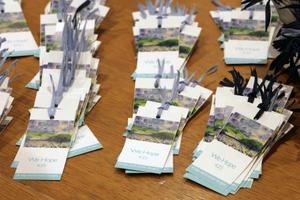 この日はメンバーらが手作業でしおりにリボンを通し、約4千枚を仕上げた。