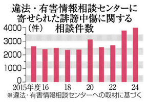 ネット中傷 相談最多 24年度3989件 投稿削除に壁 2026年4月6日 05:00 インターネットでの誹謗(ひぼう)... 残り972文字(全文:989文字) この記事をお読みいただくには「デジタルプラン」または「宅配+デジタルプラン」の会員登録が必要です。無料会員の方はログインしてマイページからコース変更してください。デジタルプランまたは宅配+デジタルプランをご登録中の方はログインしてください。 岐阜新聞デジタル会員に登録すると 無料会員向け記事が読める ニュースレターで最新情報が受け取れる デジタルプラン、宅配+デジタルプランなら Webオリジナルコンテンツが読める 紙面ビューアが読める チケットの先行発売に参加できる お得なクーポンが使える 新規登録ページ ログインページ トップ 岐阜のニュース ネット中傷 相談最多 24年度3989件 投稿削除に壁 関連記事 三番叟、来年は新曲で奉納 春の高山祭からくり屋台 「国宝」の舞踊家・谷口さん制作 自慢の美濃柴犬、毛並みや体格の美しさ競う 岐阜市で展覧会 5月11日の長良川鵜飼開幕へ鵜の検診 122羽、体調OK バレーボール NEC川崎先勝 SVリーグ女子準々決勝 ★ビシエドらがインフル 宮城、左肘靱帯損傷 全治不明 おすすめ記事 【独自】名鉄岐阜駅、商業施設2027年度開業へ 旧イクトの建物活用 FC岐阜、逆転負け 百年構想リーグ、ホームで藤枝戦 花みこし、うだつの上がる町並み彩る 「美濃まつり」が美濃市中心部で開幕 岐阜県内、最も早い田植え始まる コメどころの海津市