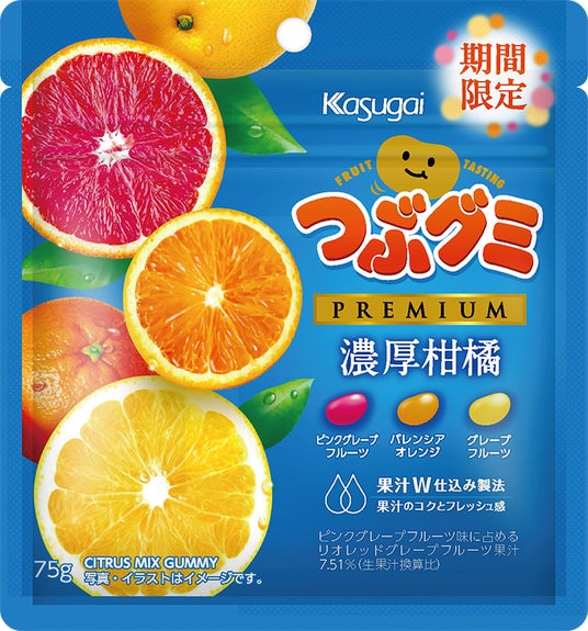 春日井製菓株式会社(本社:愛知県名古屋市西区、代表取締役社長 春日井大介、以下 春日井製菓)は、「つぶグミ」の大人気シリーズ「つぶグミPREMIUM」から、『つぶグミPREMIUM濃厚柑橘』を2026年4月6日(月)より全国の一部コンビニエンスストアで発売いたします。ピンクグレープフルーツ・バレンシアオレンジ・グレープフルーツの3種をアソートし、春にぴったりな爽やかな食べ比べをお楽しみいただけます。