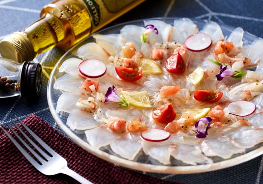 ・カルパッチョ:薄造りの繊細な味わいをオリーブオイルで引き立てた前菜