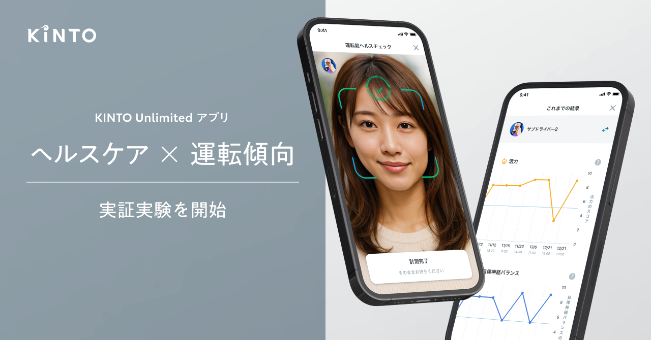 クルマのサブスクリプションサービスを展開する株式会社KINTO(以下、KINTO)は、ドライバーの健康状態(バイタルデータ)と運転挙動データの相関関係を分析し、事故低減を目指す実証実験を本日より開始します。 本実証では、ユーザー向けツールとして「KINTO Unlimitedアプリ」を活用し、トヨタ自動車株式会社(以下、トヨタ自動車)、株式会社センシング(以下、センシング)、東京海上日動火災保険株式会社(以下、東京海上日動火災保険)の協力のもと、検証を行います。*¹