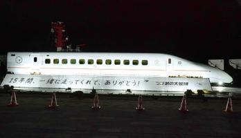2016年4月の熊本地震で走行中に被災し、修繕が完了した九州新幹線つばめの1号車が6日夜、台船に乗って福岡市の博多港に入った。3月29日に熊本港を出航し、鹿児島湾に寄った後、海岸線に沿って北上。「復活」した姿を各地でお披露目してきた。JR博多駅前に陸送され、今月8〜19日に展示する。