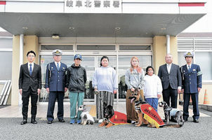 警察犬4頭捜査で活躍を 岐阜北署で嘱託書交付式 2026年4月7日 05:00 臭気選別を行うノエル=同 警察犬の委嘱を受けたシェパード2頭とミニチュアシュナウザー2頭、指導手の林栄治さん(左から3人目)、古杉未波さん(同5人目)=岐阜北署 本年度の嘱託警察犬と指導手の嘱託... 残り475文字(全文:492文字) この記事をお読みいただくには「デジタルプラン」または「宅配+デジタルプラン」の会員登録が必要です。無料会員の方はログインしてマイページからコース変更してください。デジタルプランまたは宅配+デジタルプランをご登録中の方はログインしてください。 岐阜新聞デジタル会員に登録すると 無料会員向け記事が読める ニュースレターで最新情報が受け取れる デジタルプラン、宅配+デジタルプランなら Webオリジナルコンテンツが読める 紙面ビューアが読める チケットの先行発売に参加できる お得なクーポンが使える 新規登録ページ ログインページ トップ 岐阜のニュース 警察犬4頭捜査で活躍を 岐阜北署で嘱託書交付式 関連記事 濃姫11人、岐阜市PRに決意 8代目グランプリ「みんなで協力して盛り上げる」 銅版画、線の美を追求 作家・大川さん、岐阜市で個展 事故ゼロへ地域一丸 岐阜南署など 茜部の交差点で啓発 「秋沢八幡神社」創建340周年 岐阜市 春の例祭、住民ら節目祝う シートベルト着用効果体験車で啓発 JAF岐阜支部 「和傘塾」技術継承へ開校 1期生4人、岐阜市で本格始動 職人が講師 製品化工程、2年間研修 おすすめ記事 「岐阜の二刀流」中京・鈴木悠悟がU18候補合宿で存在感 「投打ともいいアピール」 【ぎふ高校野球】 岐阜大新入生、新たな一歩 岐阜市で入学式 柴犬が警察犬に、岐阜県内初の委嘱 揖斐署、シェパードなど15頭 緊張で腹痛…「ストレスで排便」岐阜大院教授らが脳回路特定 過敏性腸症候群の治療に光