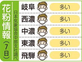 岐阜県内の花粉情報(7日) 2026年4月7日 07:37 岐阜県内の花粉飛散度は、以下の通り... 残り121文字(全文:138文字) この記事をお読みいただくには「デジタルプラン」または「宅配+デジタルプラン」の会員登録が必要です。無料会員の方はログインしてマイページからコース変更してください。デジタルプランまたは宅配+デジタルプランをご登録中の方はログインしてください。 岐阜新聞デジタル会員に登録すると 無料会員向け記事が読める ニュースレターで最新情報が受け取れる デジタルプラン、宅配+デジタルプランなら Webオリジナルコンテンツが読める 紙面ビューアが読める チケットの先行発売に参加できる お得なクーポンが使える 新規登録ページ ログインページ トップ 岐阜のニュース 岐阜県内の花粉情報(7日) 関連記事 飛騨市神岡町、東海3県で今年初の夏日に 春の全国交通安全運動初日 岐阜県警、事故防止へ出発式 ぎふワールド・ローズガーデン、早咲きバラ2品種が開花 ナシ産地・大垣市、咲き誇る白くかれんな花 授粉作業ピーク 岐阜県内の花粉情報(6日) 岐阜県内・桜の開花状況 一覧(4月5日夕 本社調べ) おすすめ記事 柴犬が警察犬に、岐阜県内初の委嘱 揖斐署、シェパードなど15頭 緊張で腹痛…「ストレスで排便」岐阜大院教授らが脳回路特定 過敏性腸症候群の治療に光 薬局来てストレッチしない?高機能マシン導入 岐阜・ウラタ薬局、ドラッグストアと差別化図る 濃姫11人、岐阜市PRに決意 8代目グランプリ「みんなで協力して盛り上げる」