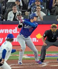 【トロント共同】米大リーグは6日、各地で行われ、ドジャースの大谷はトロントでのブルージェイズ戦に「1番・指名打者」で出場し、六回に2試合連続本塁打となる3号ソロを放った。六回まで4打数2安打1打点。ブルージェイズの岡本は「4番・三塁」で出場し一回に左前打を放って2打数1安打。試合は六回表を終えてドジャースが9―1でリード。