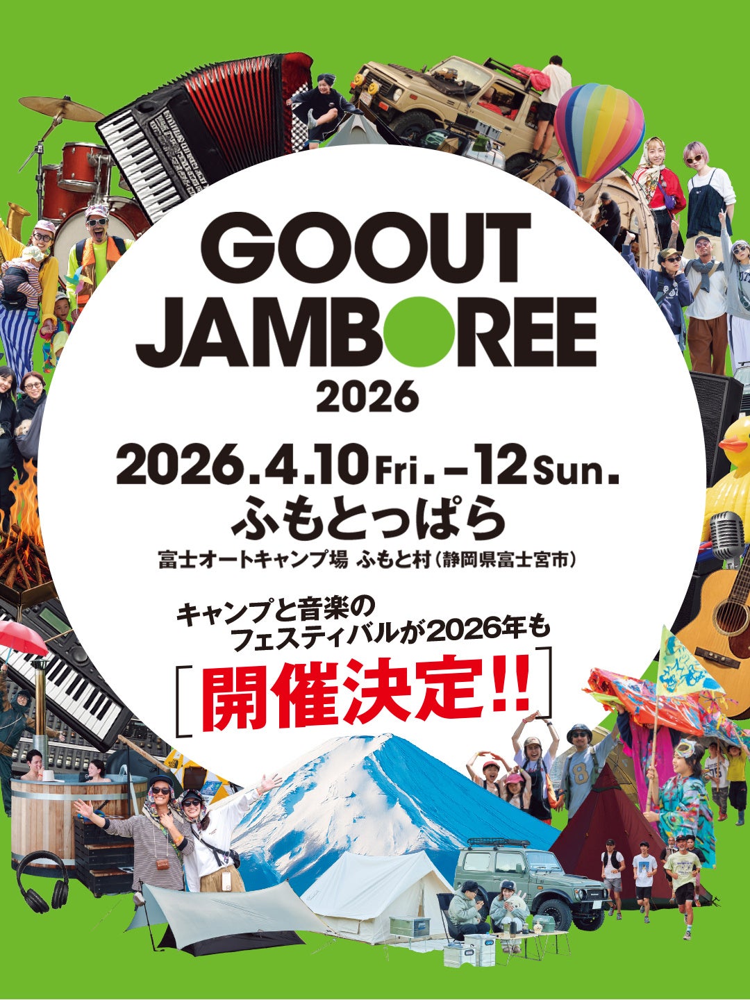 「GO OUT JAMBOREE」は、キャンプ・音楽・ファッション・アクティビティが一体となった日本有数のアウトドアイベントです。雄大な自然に囲まれたロケーションの中で、アウトドアライフスタイルの魅力を存分に体験できる場として、多くの来場者から支持を集めています。