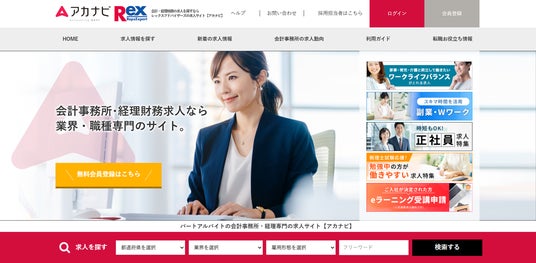 株式会社レックスアドバイザーズは、公認会計士、税理士、会計経理人材に特化して、キャリア支援や採用支援を行っています。サービスは全国で行っており、東京本社以外に、大阪支社、名古屋支社、福岡オフィス、岡山オフィスがございます。パートアルバイト採用支援のアカナビ(https://kaikeizeimu.jp/)以外に、人材紹介サービス(https://www.career-adv.jp/)人材派遣のREX派遣(https://www.career-adv.jp/haken/)、、人材定着支援のREXキャリアデザイン(https://okacari.com/)などのサービスを展開しており、税理士や公認会計士のプロフェッショナルのキャリアをワンストップで支援できる体制を整えています。