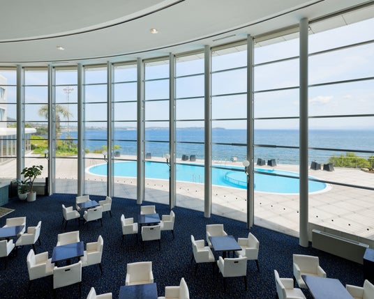 別府湾を一望する高台に位置し、雄大な海と緑の山並みが織りなす美しい景色が広がるリゾートホテル。城下町の面影が残る歴史ある日出町に位置し、大分空港からバスまたはタクシーで約30分、別府市内へも約30分と、人気のテーマパークや水族館など周辺観光へのアクセスも良好です。ビュッフェレストランでの地元の豊かな食材を活かした多彩な料理を提供するほか、天井までの大きな窓が開放感を演出するラウンジ利用、期間限定のガーデンプールもオールインクルーシブで楽しめます。ファンには嬉しい人気キャラクターのコンセプトルームも備えています。敷地内から湧出する温泉露天風呂「日出温泉」では、海から昇る朝日を眺めながら癒しのひとときをお過ごしいただけます。