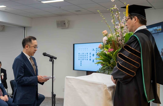 清々しい春の佳き日に、事業構想大学院大学にご入学された皆様に心よりお祝い申し上げます。全国各地・多様な分野から志を持つ皆様が集い、新たな一歩を踏み出されることを大変心強く感じております。本学のカリキュラムでは、東英弥理事長の著書である『事業構想原論』に基づき、「発想・構想・計画・伝達・実践」の体系的な学びを通じて、社会課題の解決に資する構想力を養います。豊かなネットワークと実践的な学修環境を活かしながら、理想を現実へと引き寄せる挑戦を重ねてください。