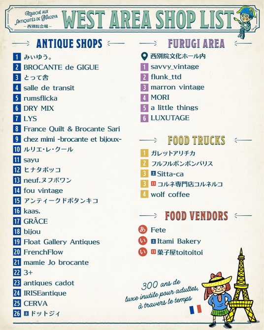 過去最大規模での開催!東別院を中心とするエリアに全国から約150店舗の人気アンティーク・古着店が集結。西別院は「フランスの蚤の市」をテーマに人気出店者が集結。新企画「古本と、レコードと。」開催!